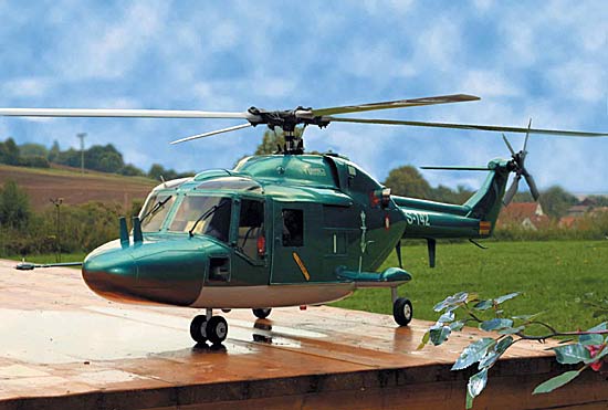 Als Modell erhalten Sie die Lynx im Bausatz mit einem 8teiligen Rumpf, einem 3-Bein Landefahr- werk, einem Scheibensatz, Span-