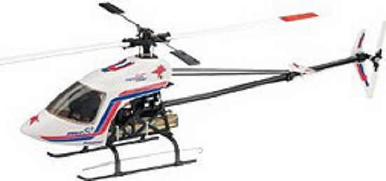 rotor, Autorotationsfreilauf, Ge- stänge, schwerpunkt- optimierte Hauptrotorblätter aus Holz mit S- Schlag-Profil, GFK- Heckrotor- blätter. Tiefgezogene, bereits fertig verklebte ABS-Kabinenteile, rauch-