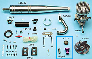 rechtsdrehend: 7,73 : 1 linksdrehend: 8,04 : 1 - Motorstart von oben mit Sechskant- Anlassadapter - Heckauslegerohr Ă 25 mm, kugel-+