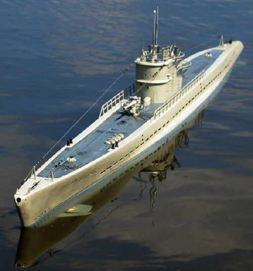 Vorbildgetreues, statisch tauchendes Modell eines Unterseebootes des Typs IX im Maßstab 1:45 Unser Preis: 999,- bis 1.100,- € (Euro); (je nach Tauchsystem: TAE, TAES, TMAX) !!