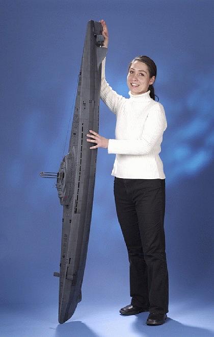 Typ XXI-Boot U-2540 Genau wie die legendäre robbe-U-47 taucht dieses Modell nach dem dyna- mischen Tauchverfahren. Das fast 2 Meter lange Modell besteht ebenfalls aus Vorder- und Hinterschiff, welche durch eine zentrale Verschraubung voneinander getrennt werden können, um die Motoren- und RC-Einheit aus dem Druckkörper herauszuziehen.
